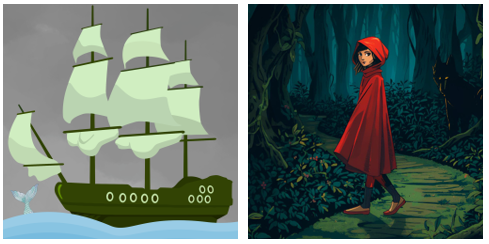 Voorstellingen van de groepen Beta2 (de vliegende Hollander) en Gamma1 (de Wolf en het kapje)